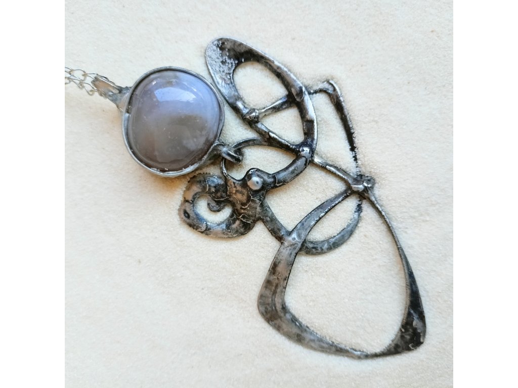 Přívěsek má rozměry: 7 x 11 cm. Achát krajkový velikosti L 2,5 x 3 cm.